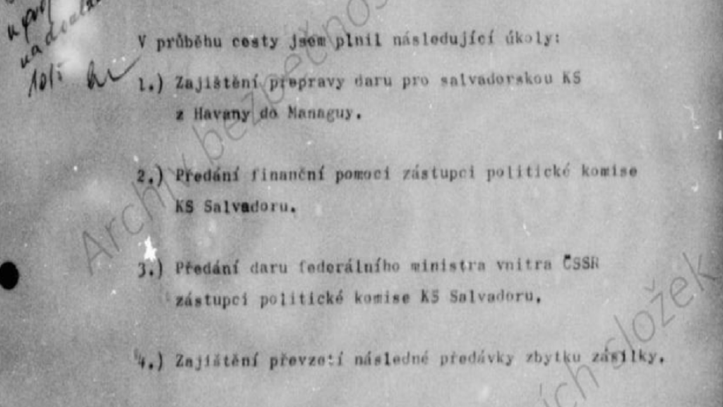 - Zajištění přepravy daru pro salvadorskou KS (Komunistickou stranu) z Havany do Nikaraguy.