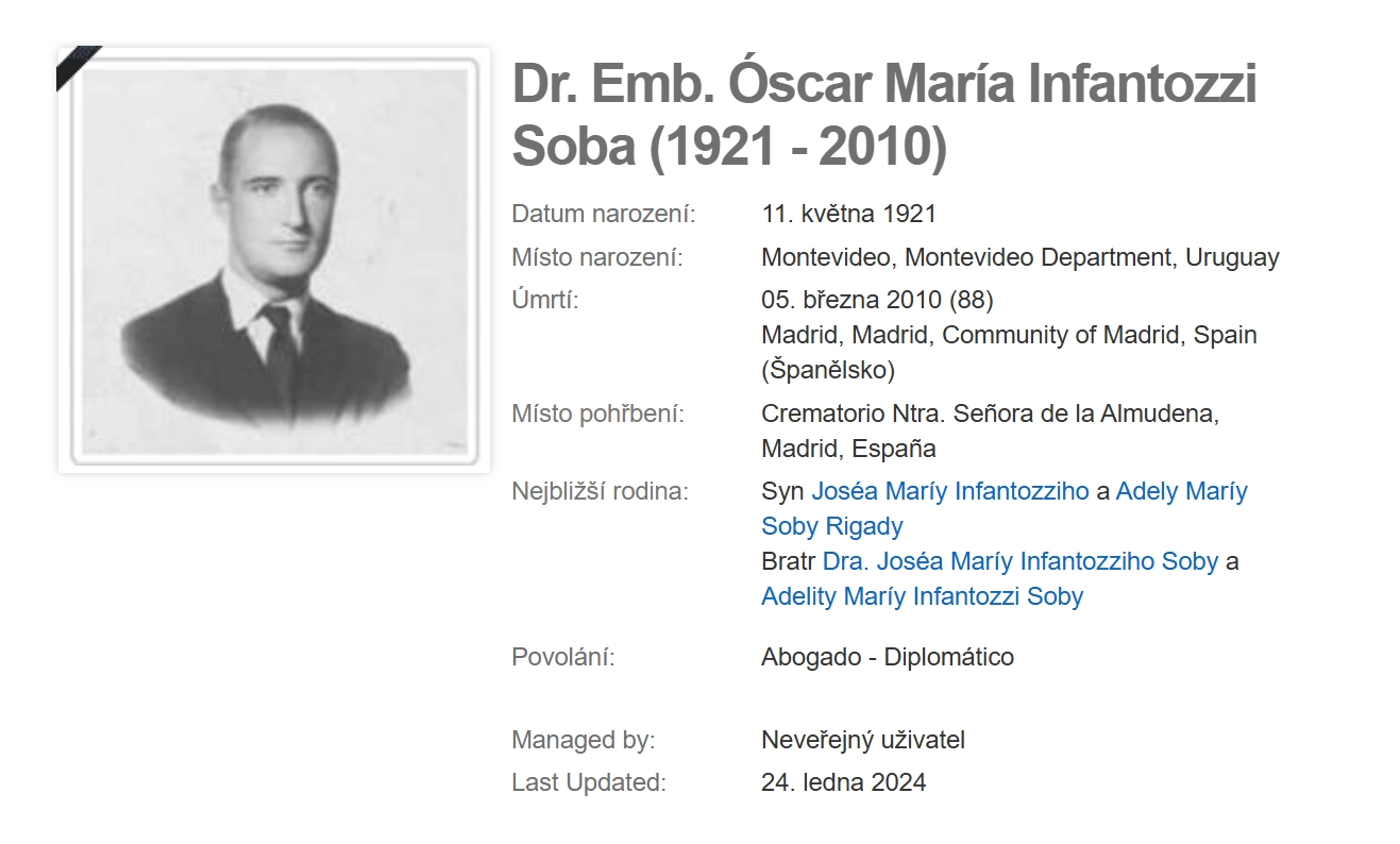 No sé qué ocurrió con Óscar María Infantozzi Soba después de 1973. Lo único seguro es que murió en 2010 en Madrid. También es seguro que, en ese período, ya no tuvo nada que ver con la StB, y probablemente tampoco con Checoslovaquia.
