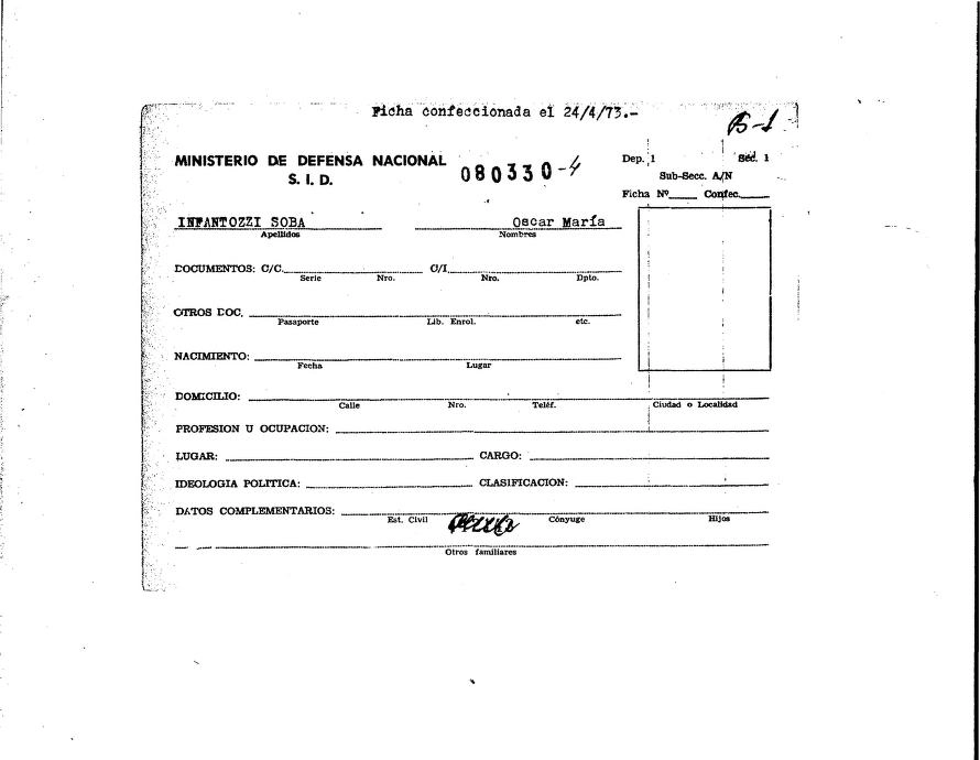 Aquí vemos además capturas de la ficha de la inteligencia uruguaya (SID), de las que se desprende únicamente que Infantozzi Soba viajó a Checoslovaquia en 1972 y que, por ese motivo, fue registrado por el servicio como una persona con algún tipo de vínculo con el mundo comunista.