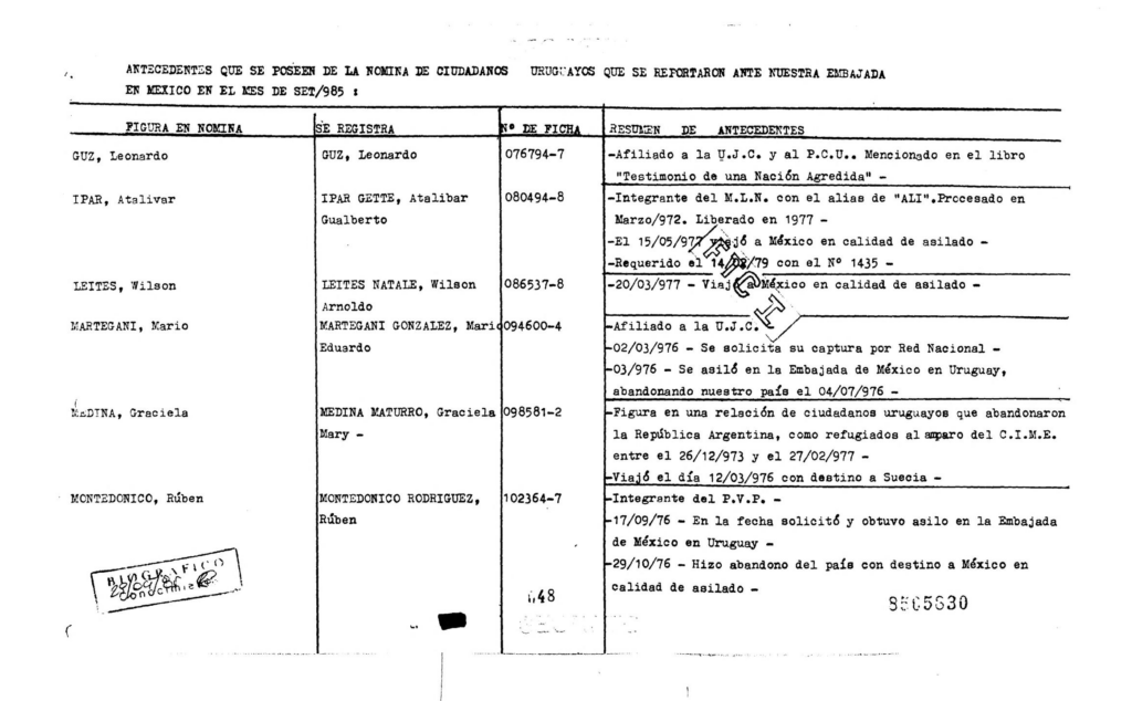 Do listy Urugwajczyków zatytułowanej „Agenci i inni” należy dodać nazwisko innego Urugwajczyka, mieszkającego od 1977 roku w Meksyku i posiadającego wówczas włoski paszport.